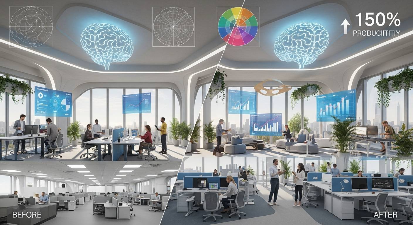 この劇的な変化を生み出す秘密は、人間の脳の働きに着目した科学的アプローチにあります。ハーバード大学の研究では、自然光が豊富な環境で働く従業員は、そうでない環境と比較して創造的思考が56%向上し、問題解決能力が42%高まることが証明されています。