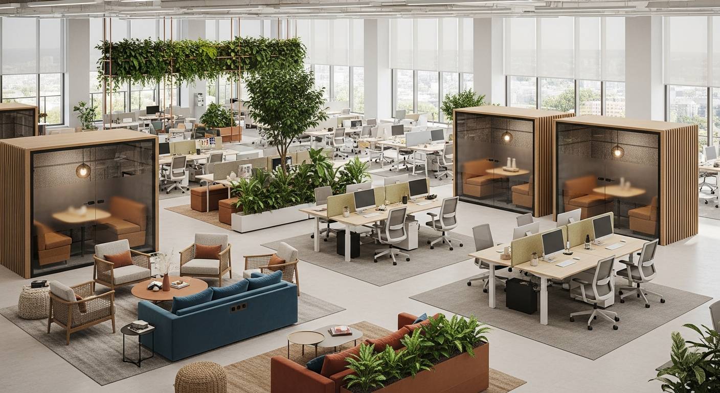 忘れてはならないのが「プライバシーへの配慮」です。オープンスペースだけでは集中作業が困難で、ストレスの原因になります。電話ブース、集中ポッド、予約制の個室など、必要に応じてプライバシーを確保できる環境が必須です。楽天グループのオフィスでは、オープンスペースと集中ブースをバランスよく配置し、社員の作業効率向上に貢献しています。